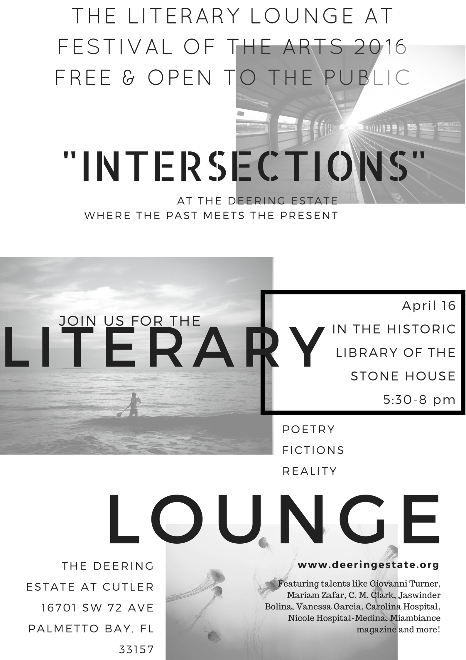 At the Festival of the Arts this year, the theme is “Intersections.” So, again we will be featuring contemporary, renowned poets and writers in the historic Library, Stone House, Deering Estate, Miami, FL. With a diverse mix of highly accomplished writers, such as Jaswinder Bolina, Mariam Zafar, Giovanni Turner, Carolina Hospital, CM Clark, Vanessa Garcia (more names to come!), there’s no doubt many worlds will intersect in this antique and tropical space. See this poster I designed (which I’m so proud of 😋).